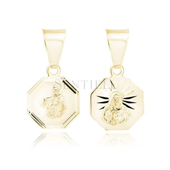 Colgante de Plata de ley 925 chapado en oro Jesús Cristo / Escapulario María