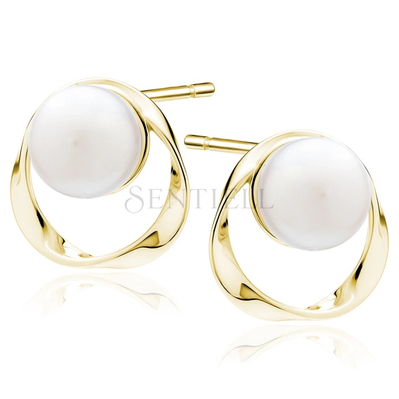 Pendientes de plata de ley 925 chapados en oro con perla