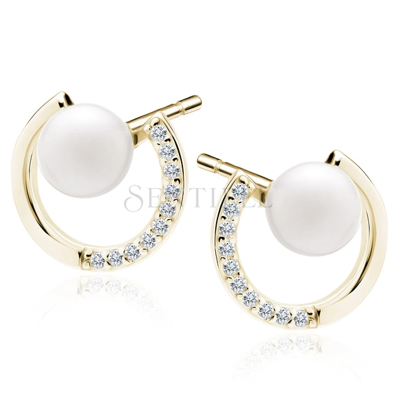 - Pendientes de plata de ley 925 chapados en oro con perla y circonitas blancas