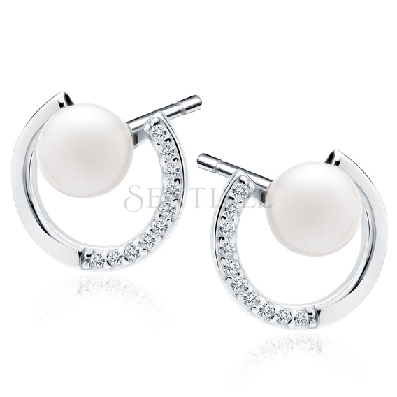 - Pendientes de plata de ley 925 con perla y circonitas blancas