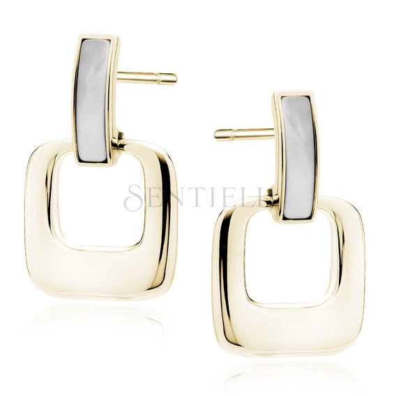 - Pendientes de plata de ley 925 chapados en oro con nácar