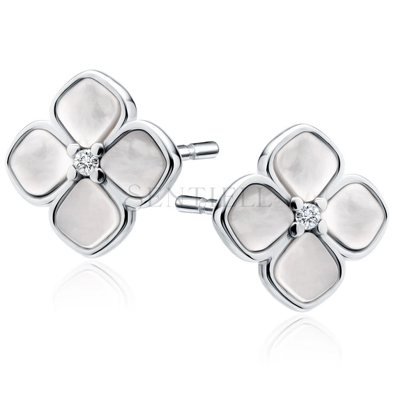 Pendientes de plata de ley 925 con nácar - flores blancas con circonitas blancas