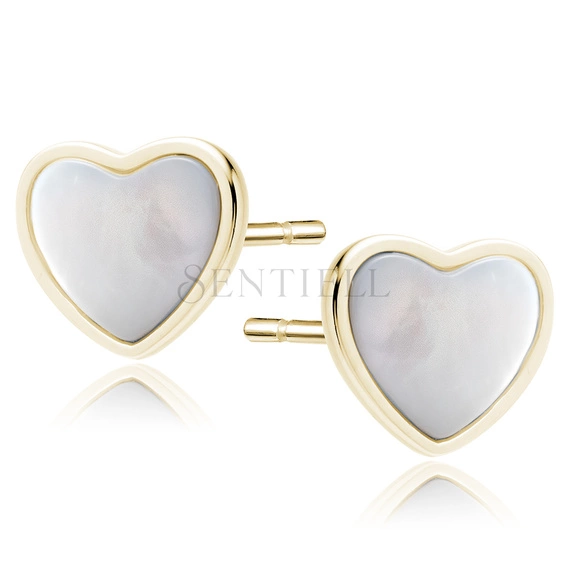 Pendientes de plata de ley 925 chapados en oro con nácar - corazón