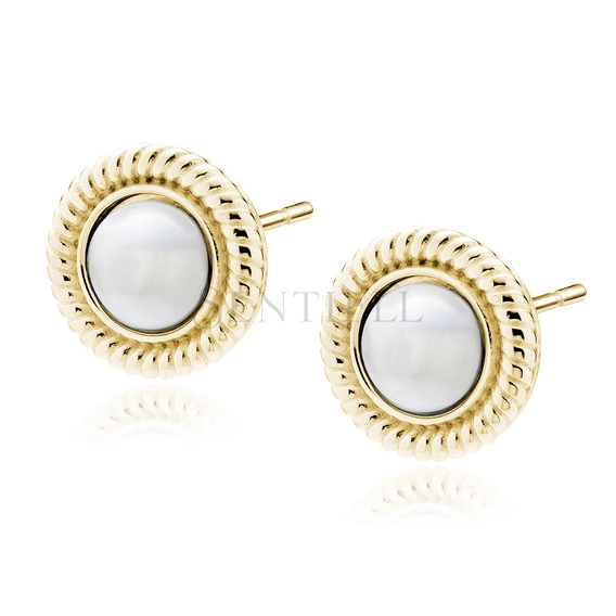 - Pendientes de plata de ley 925 chapados en oro con perla