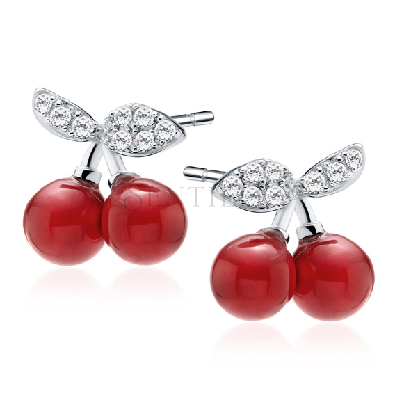 Pendientes de plata de ley 925 - cerezas con circonitas blancas y perla roja