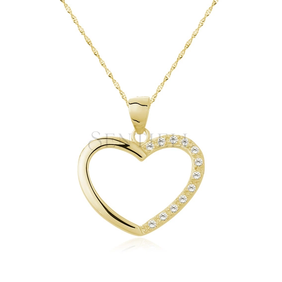 Collar de corazón de plata de ley 925 chapado en oro con circonitas blancas tono claro de baño de oro