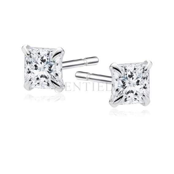 Pendientes de plata de ley 925 chapados en rodio circonitas blancas cuadradas 3 x 3 mm
