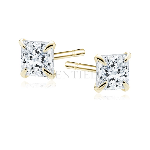 Pendientes de plata de ley 925 chapados en oro con circonita blanca cuadrada 3 x 3 mm