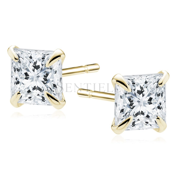 Pendientes de plata de ley 925 chapados en oro circonita blanca cuadrada 4 x 4 mm