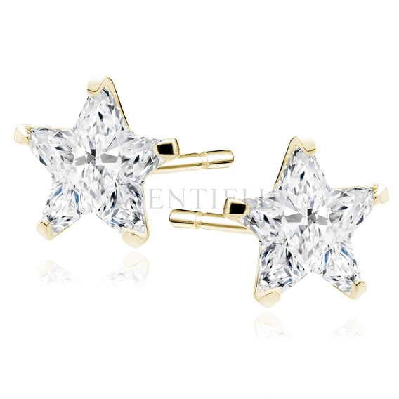 Pendientes de plata de ley 925 chapados en oro con circonitas blancas estrellas 5 x 5 mm
