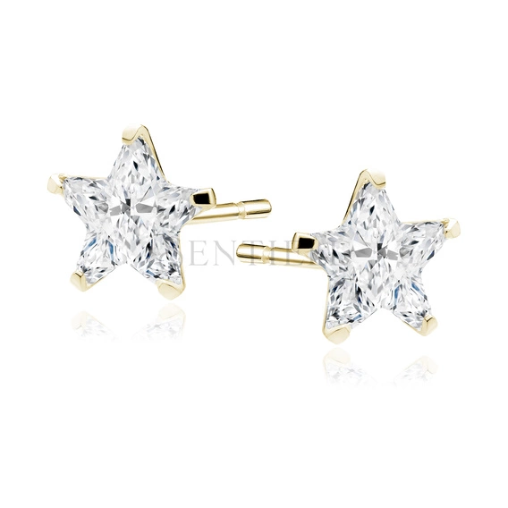 Pendientes de plata de ley 925 chapados en oro con circonita blanca 4 x 4 mm estrellas