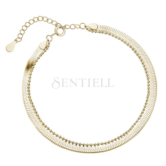 - Pulsera de Plata de ley 925 chapada en oro con cadena tipo snake y cadena de bolitas