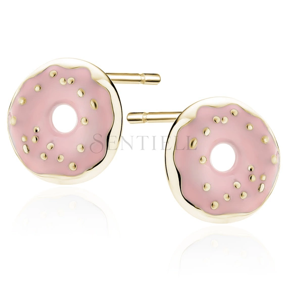 - Pendientes de plata de ley 925 chapados en oro con esmaltado tipo donut