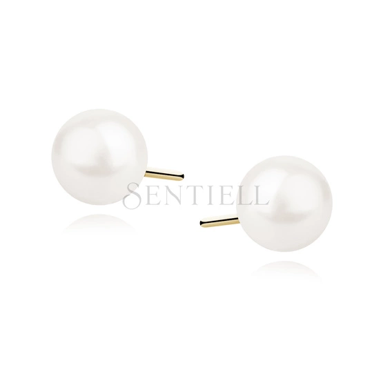 Pendientes de plata de ley 925 chapados en oro con perla blanca