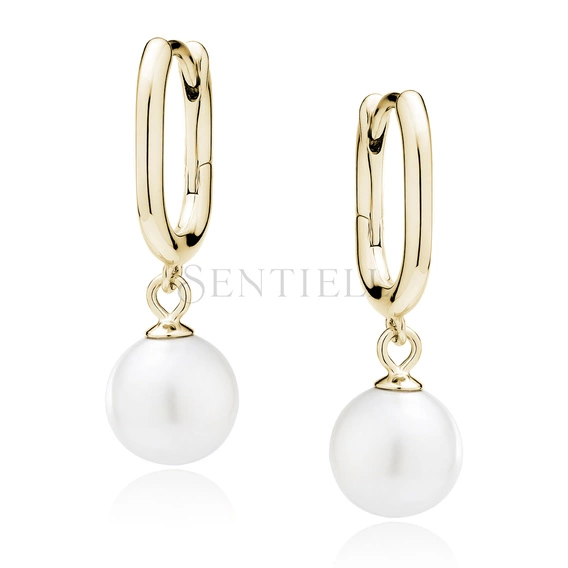 Pendientes elegantes bañados en oro de plata de ley 925 con perla