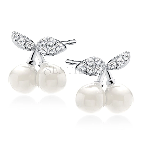 Pendientes de plata de ley 925 - cerezas con circonita blanca y perla