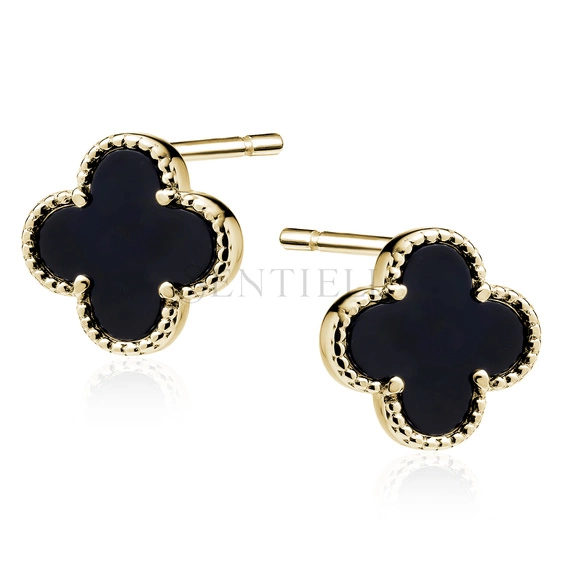 Pendientes de plata de ley 925 con ónix negro chapados en oro - cuatrifolio
