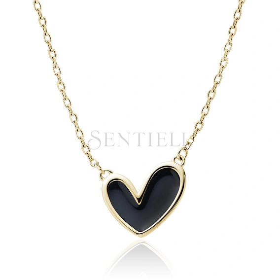 Silver (925) gold-plated necklace - heart with black enamel