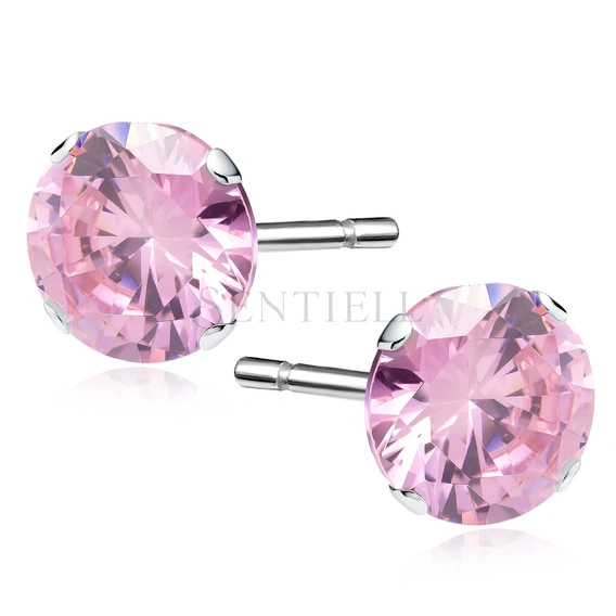 Pendientes de plata de ley 925 redondos con circonita rosa diámetro 8 mm