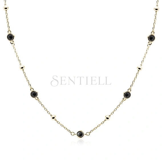 Silver (925) gold-plated necklace with balls and black zirconias