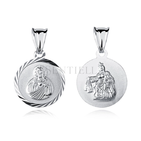 - Colgante de plata de ley 925 tallado a diamante - Jesucristo / Escapularia María / Virgen Santísima - a doble cara