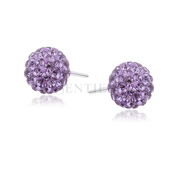 Pendientes de bola disco de plata de ley 925 8 mm violeta