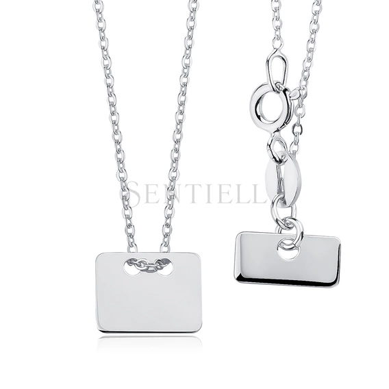 Silver (925) necklace with rectangle pendant and metal tag