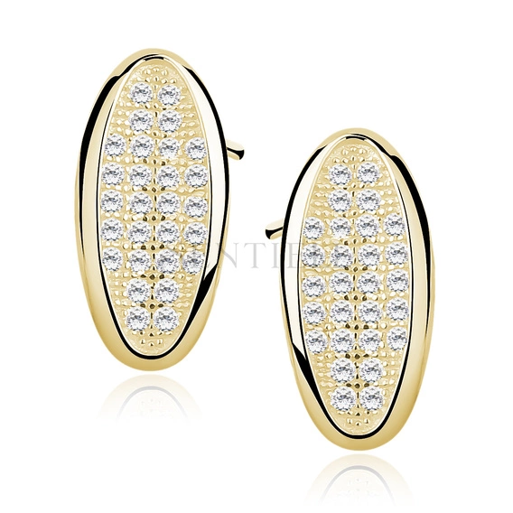 Silver (925) Earrings oval shape - zirconia microsetting gold-plated