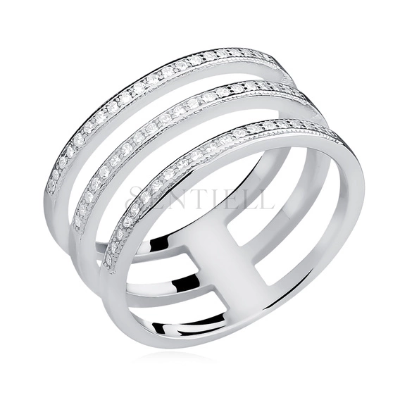 Anillo grande de plata de ley 925 con circonita blanca