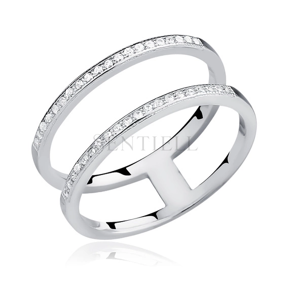 Anillo doble grande de plata de ley 925 con circonita blanca