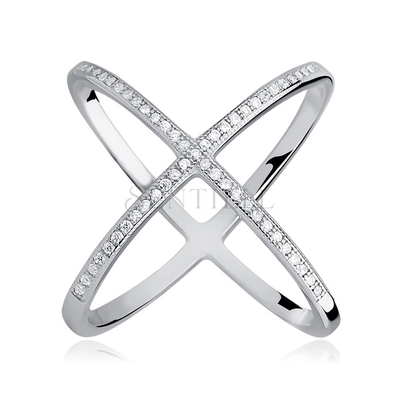 Anillo doble grande en X de plata de ley 925 con circonita blanca